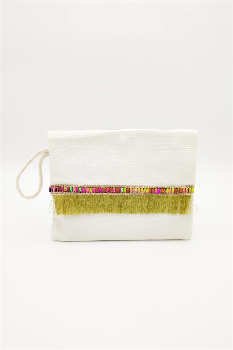 Yağ Yeşili Püsküllü Clutch Çanta